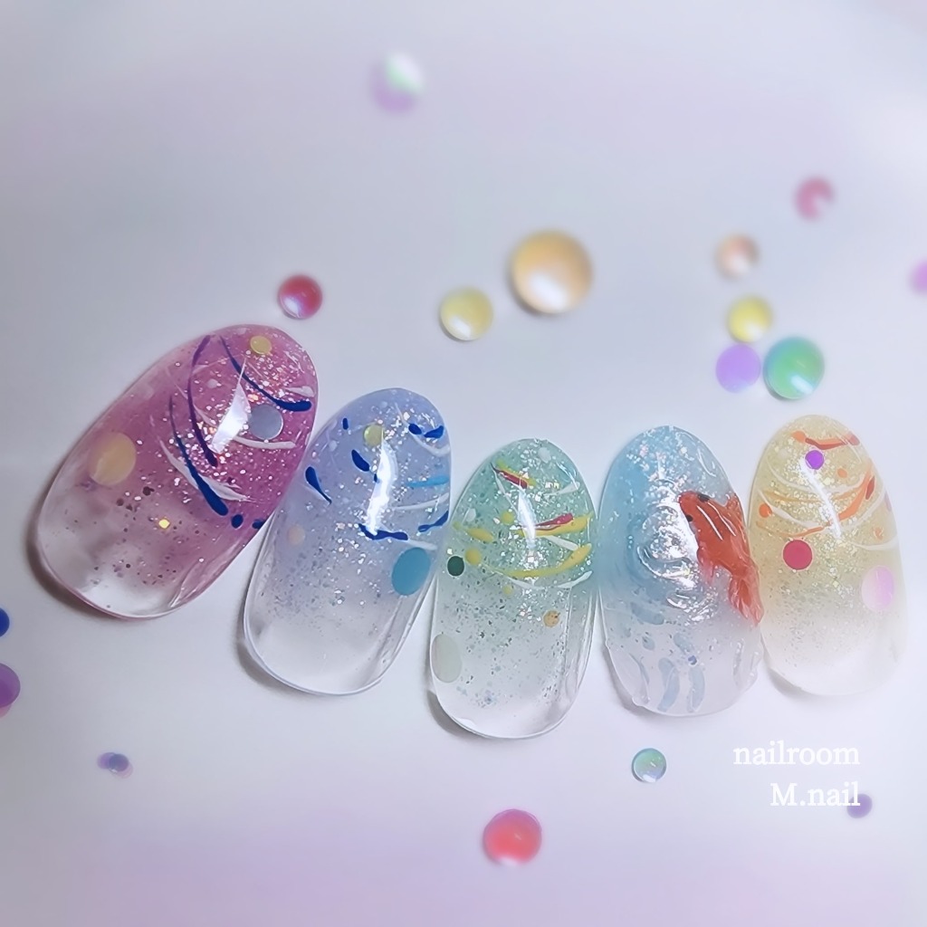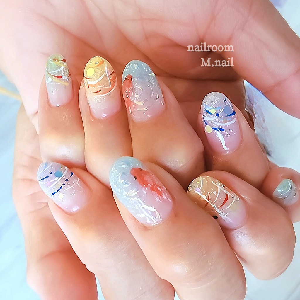 金魚とヨーヨーをモチーフにした縁日ネイル✨