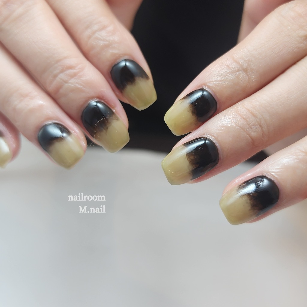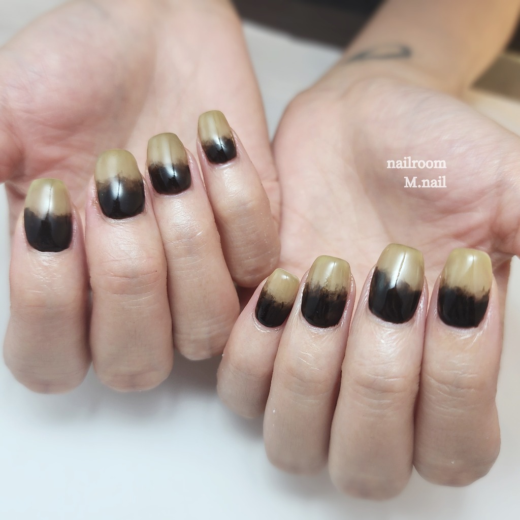 シンプルなのに存在感抜群💦カーキ×ブラックの最旬ネイル✨