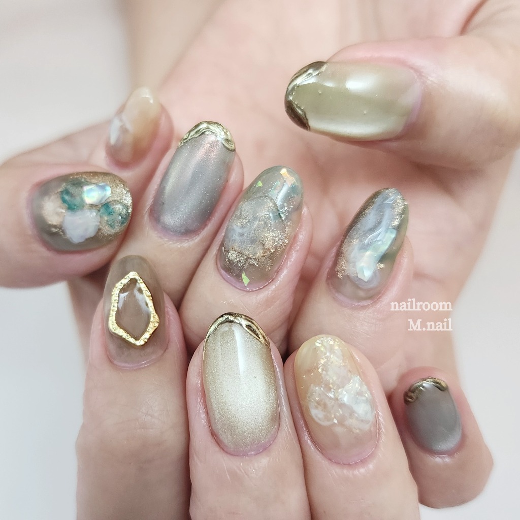 透き通るシアーカラーで秋らしさもある大人可愛いニュアンスデザイン✨