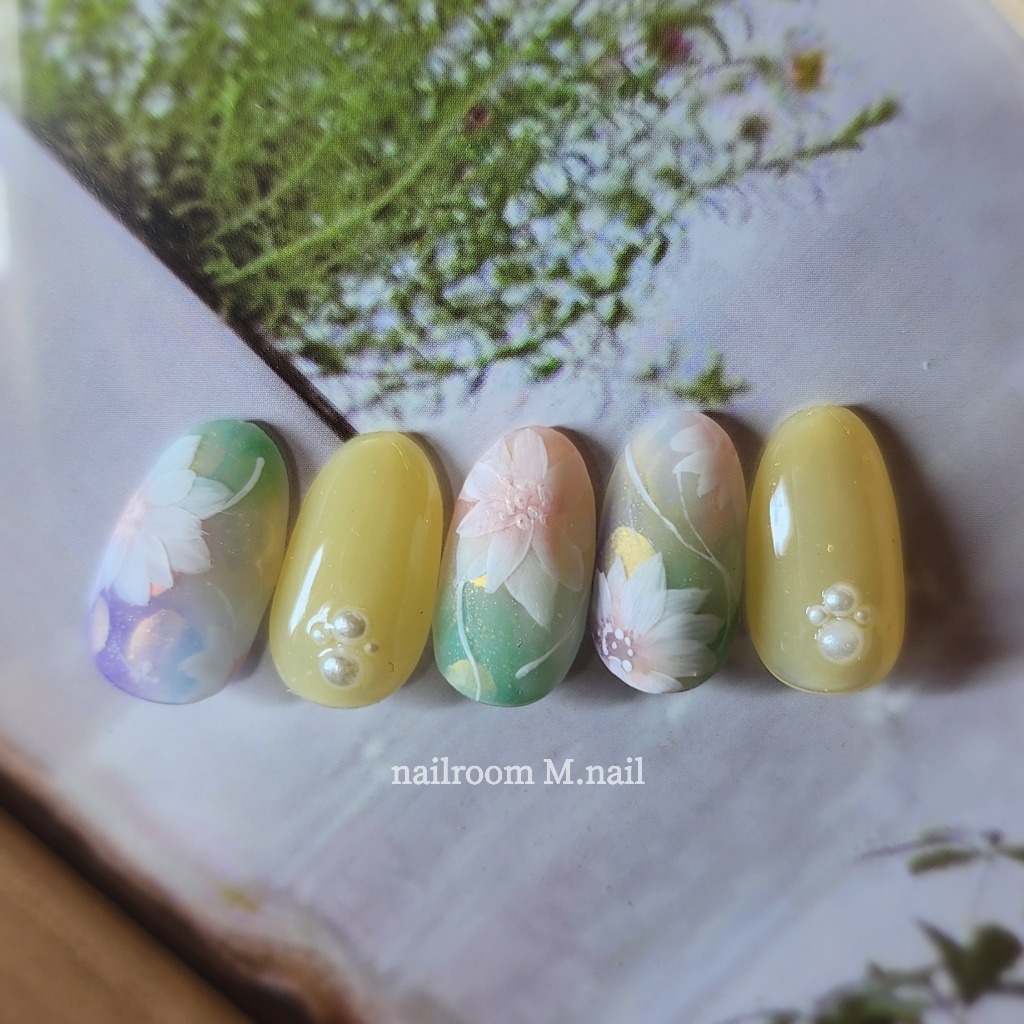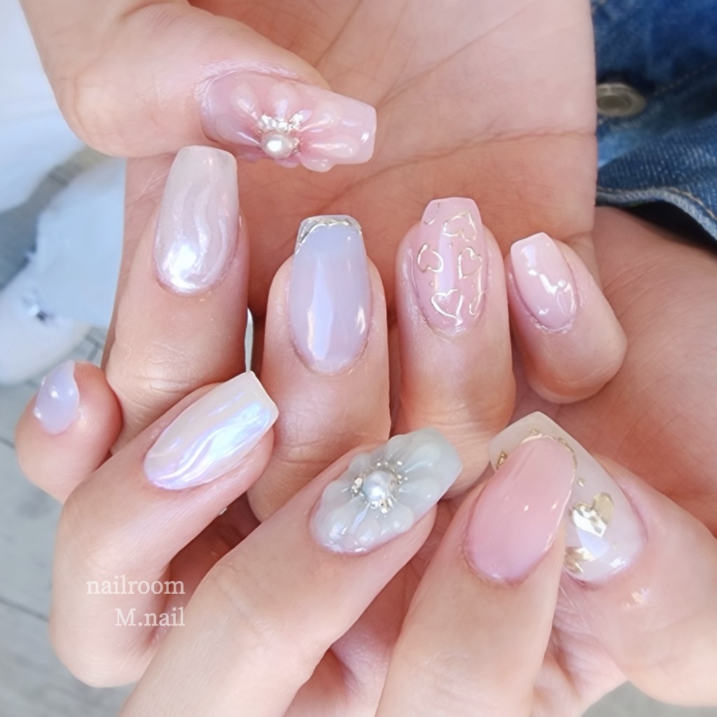 パステルカラーで可愛いをたっぷりつめたぷっくりフラワーネイル✨