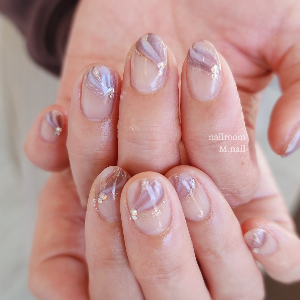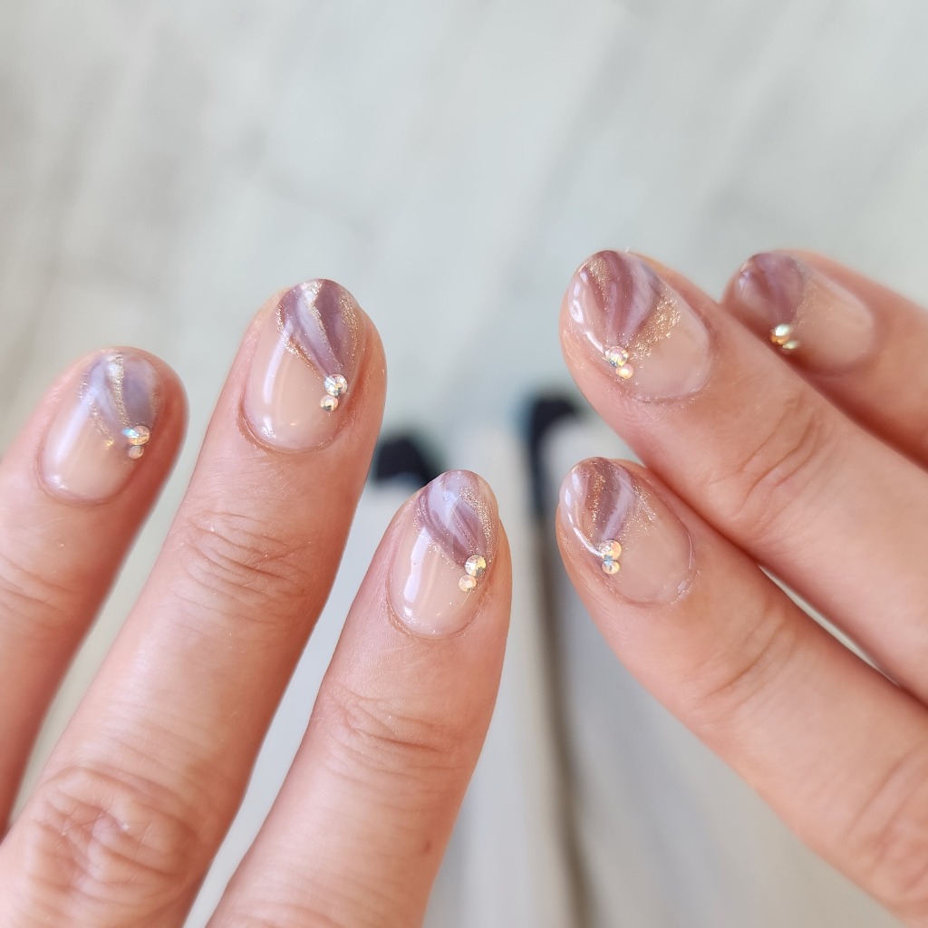 ミラーアートで派手過ぎないニュアンスネイル✨