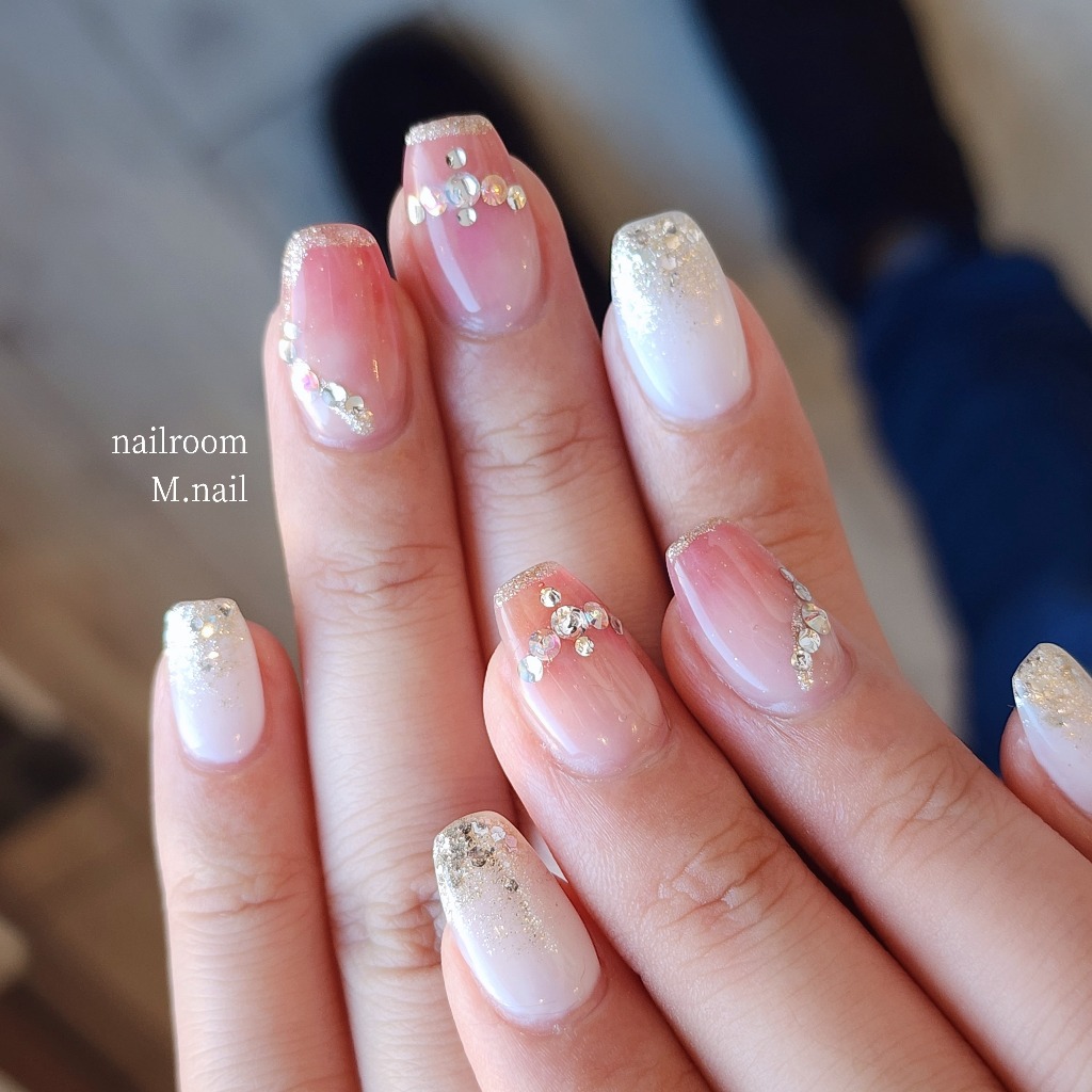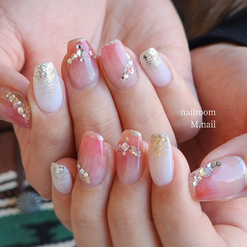 ゴールドラメときらきらストーンをのせて可愛さアップ✨