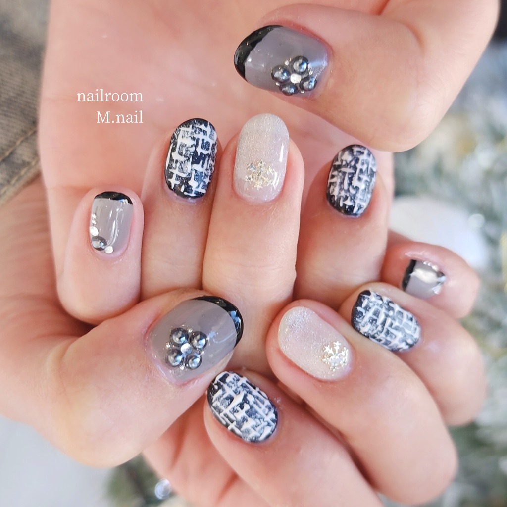 ツイードネイル✨と雪の結晶