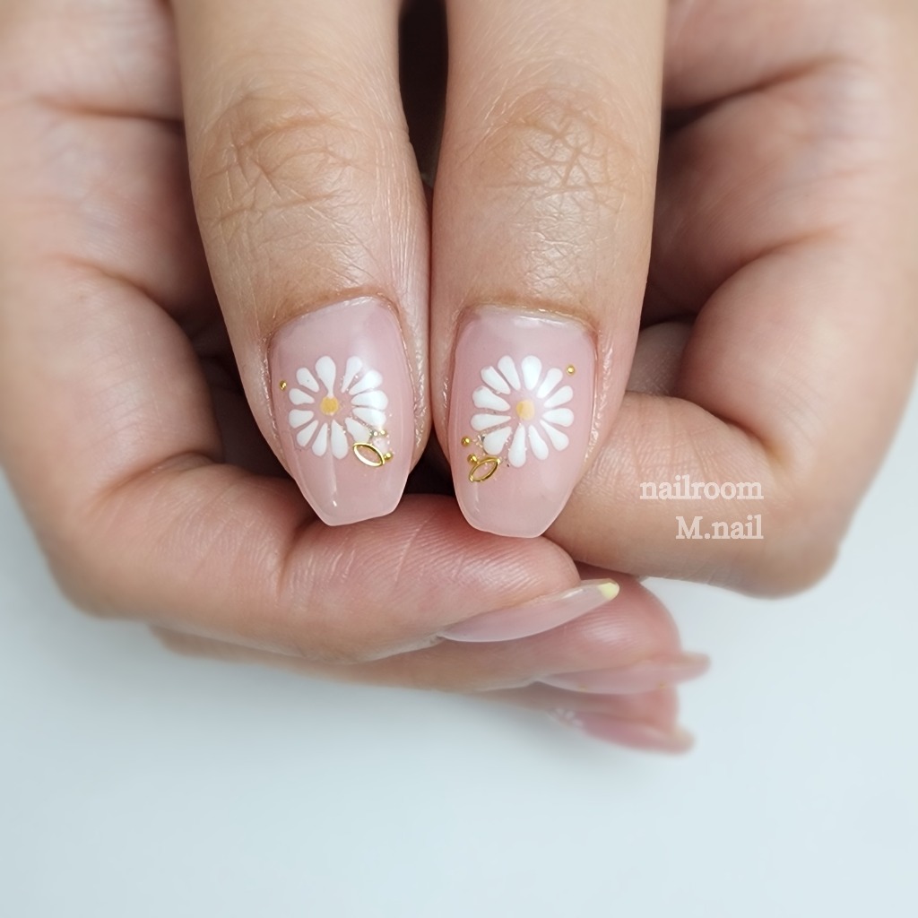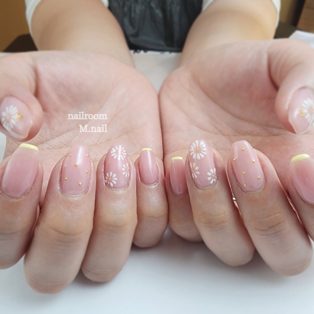 淡いピンクにお花が可愛い春ネイル✨