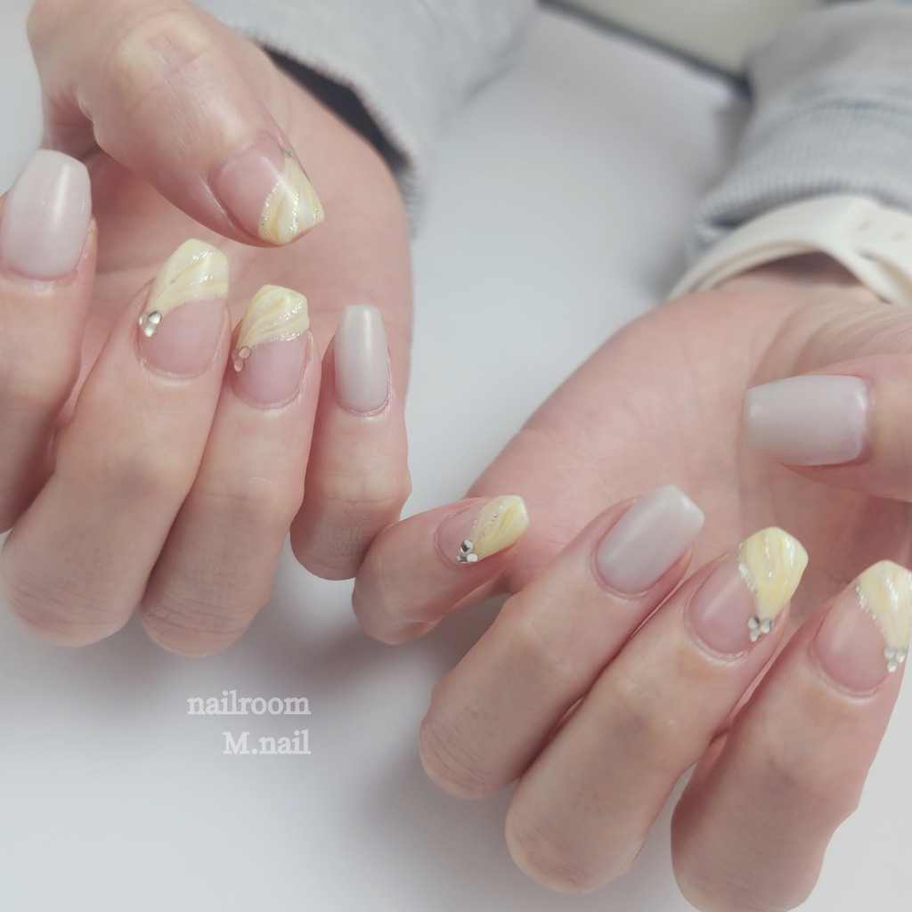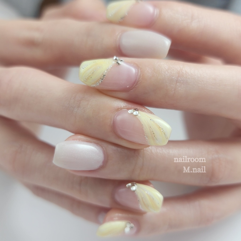 淡いイエローのマーブルネイル✨