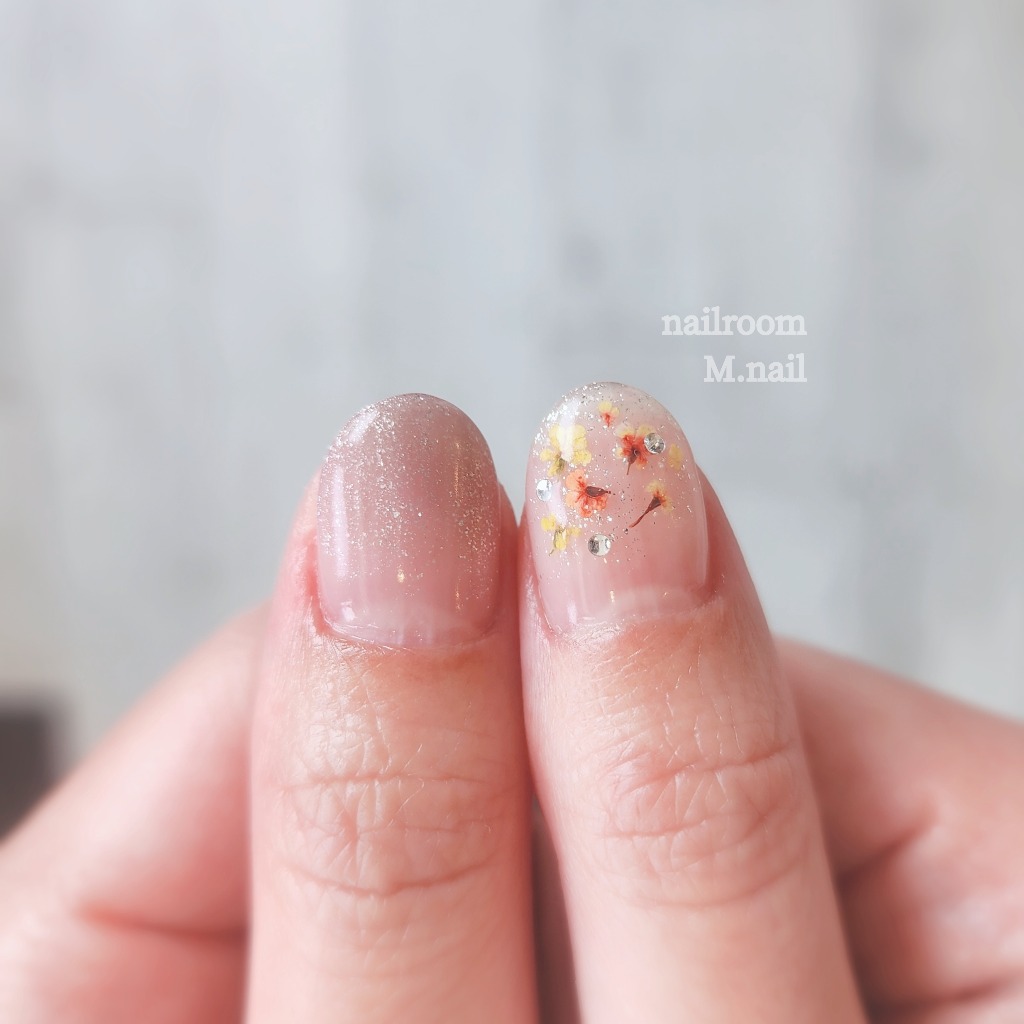 小さな押し花を散りばめて大人可愛いネイルに✨