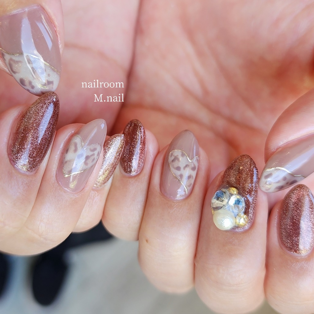 さりげなくハートにレオパード柄を入れた大人可愛いデザイン✨