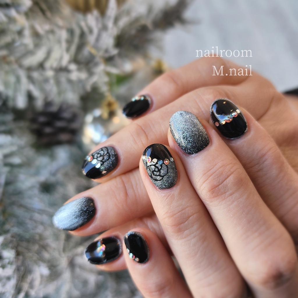 ブラックのマグネットネイル✨