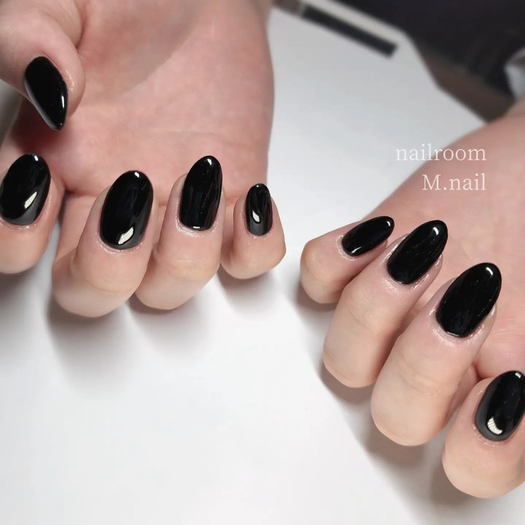 ブラックのワンカラーネイル‼️