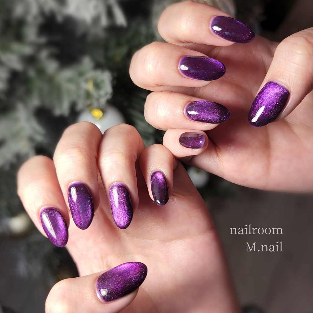 光の角度でキラキラが変わるパープルのマグネットネイル💜