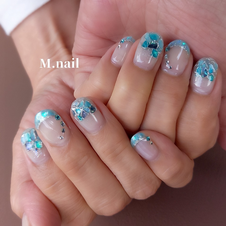 爽やかな水色のシェルネイル