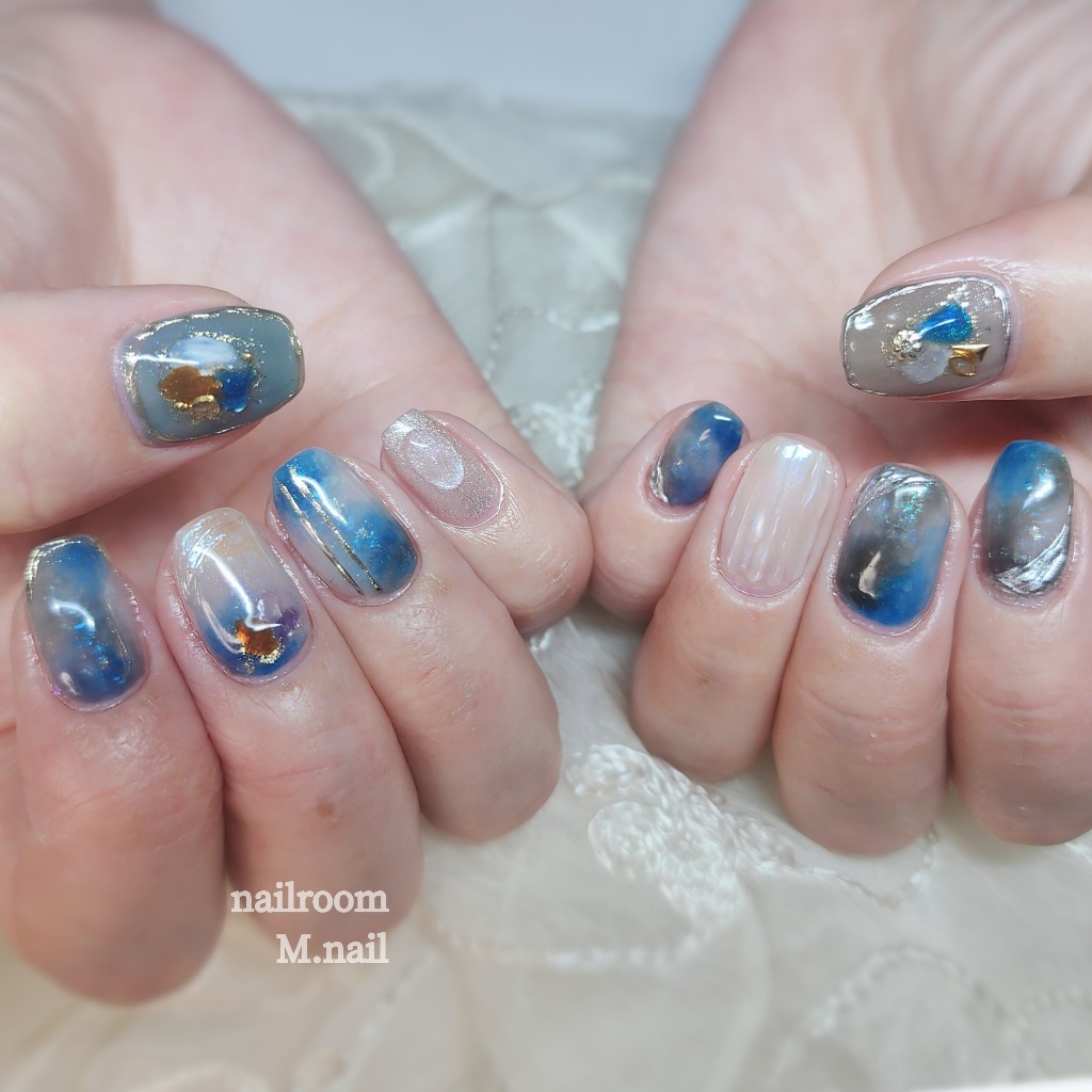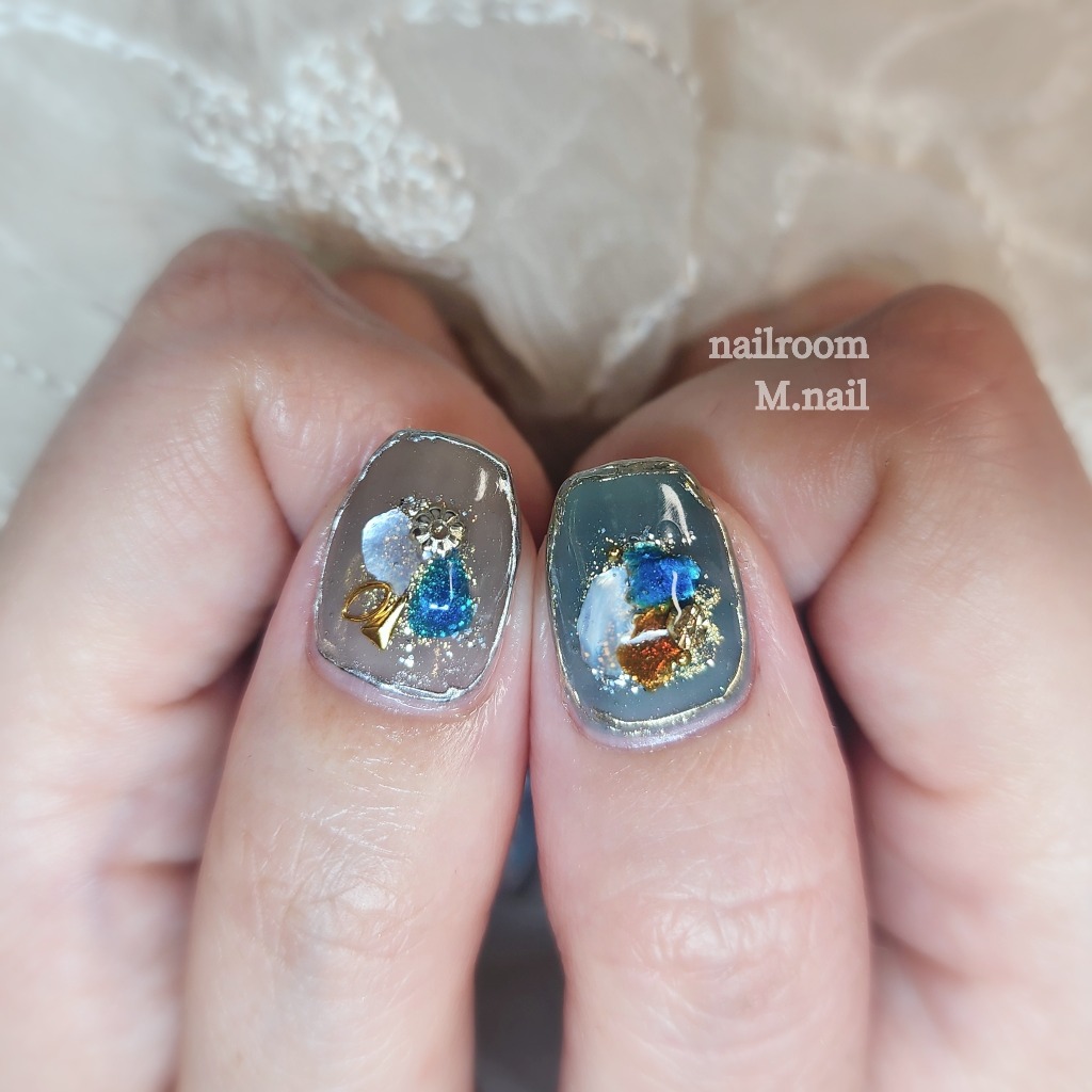 マグネットにきらきらゴールドのハートが目を惹く大人バレンタインネイル✨