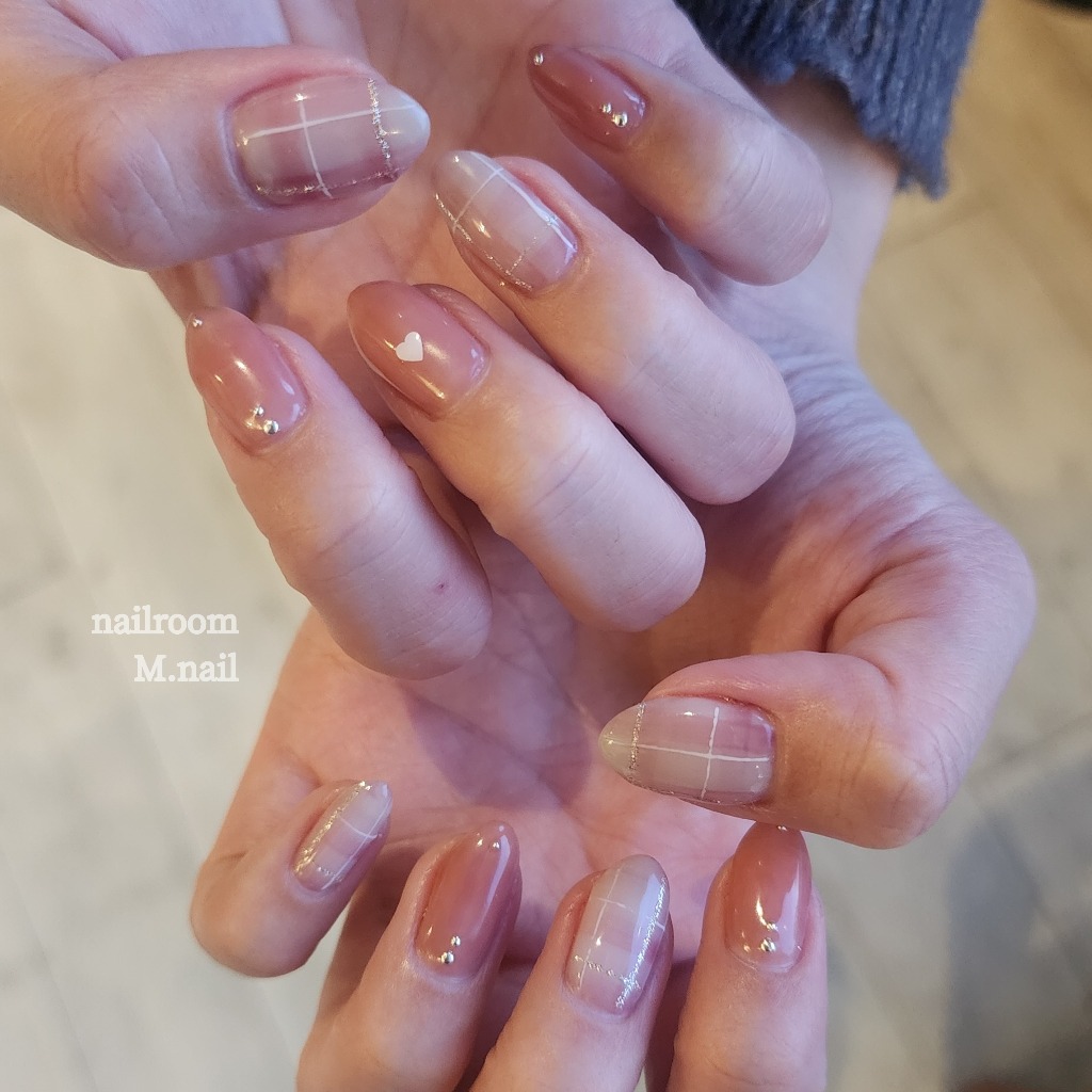 チェック柄に控えめな❤️の大人バレンタインネイル✨