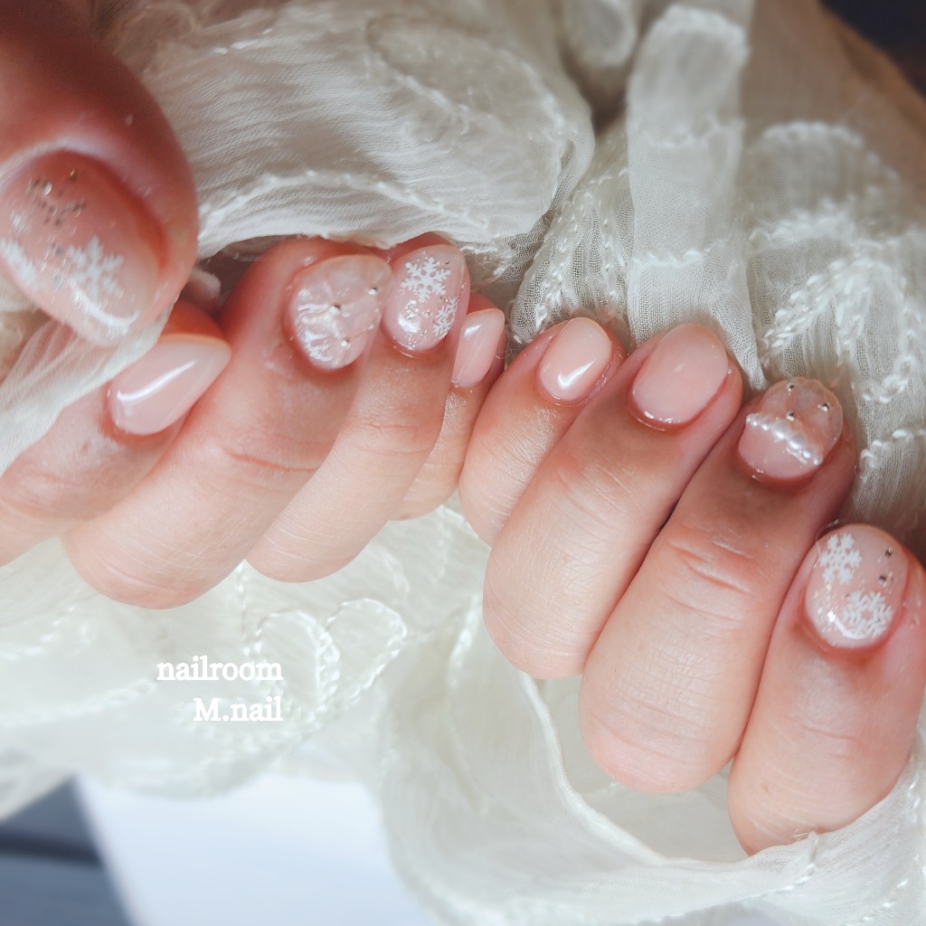 肌馴染みの良いシアーピンクのベースカラーにぷっくりキルティングと雪の結晶✨